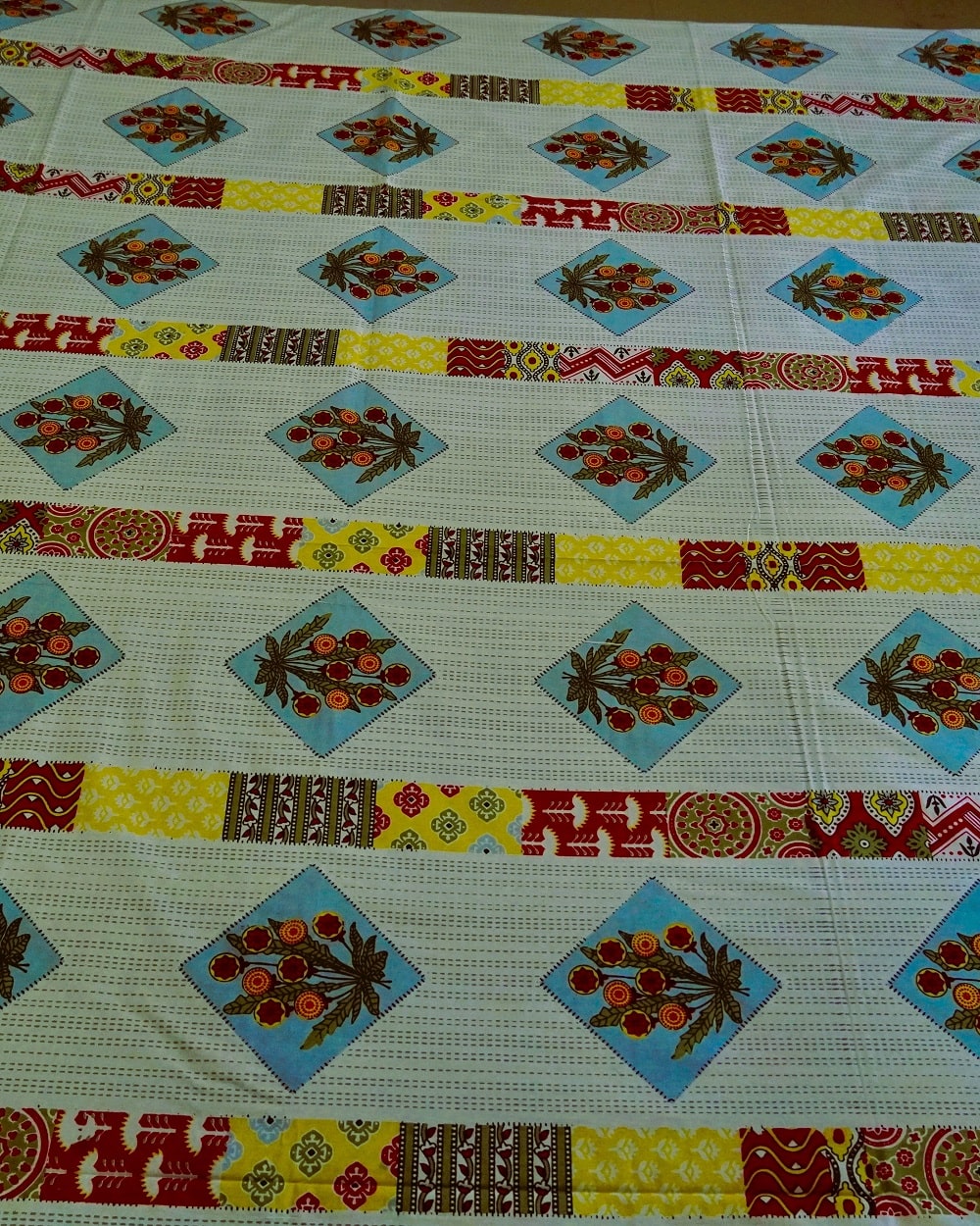 • Color: Cream base with multicolor floral and geometric designs