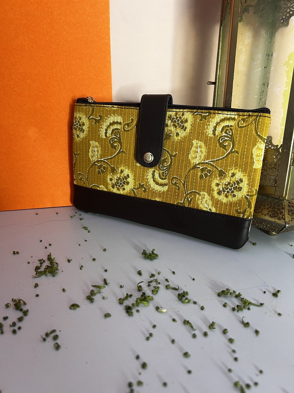 A Hint of Sunshine in Every Detail The clutch is handmade and is adorable with flowery motifs that will illuminate an outfit in the shade of yellow. The premium cotton embellishes an intricate hand-block printed designs combining old with beauty timeless.